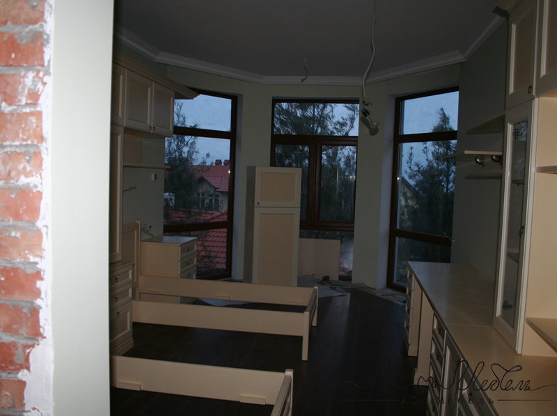 набор модульной мебели с зонами хранения, антресольными шкафами и двумя кроватями (спальное место 800*2000). Общая длина застройки 3300мм