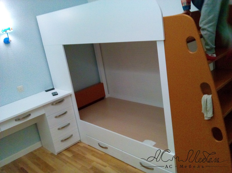 1 двух-ярусная кровать  с двумя выдвижными ящиками. Спальное место 800*1900