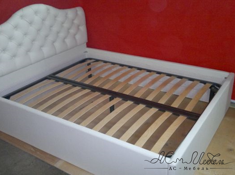 Кровать с оригинальной спинкой, выполненная с помощью утяжек пуговицами или стразами, сможет оживить любую спальню. Прекрасно выглядит в искусственных кожах или велюрах.