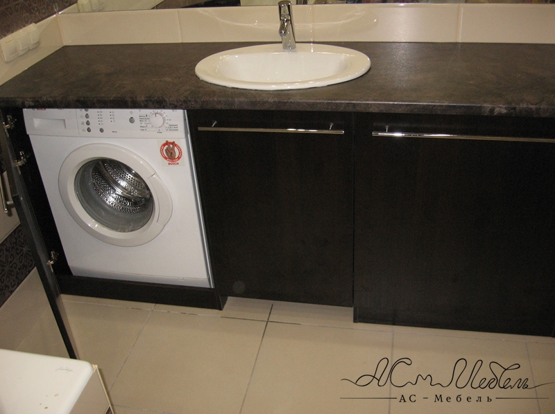 Простая по своему дизайну тумба  ACM-M.045 радует своих владельцев своей вместительностью и комфортом. За тремя распашными фасадами можно хранить все предметы ванной комнаты, бытовую химию. Широкая столешница тумбы скрывает стиральную машину, делая интерьер цельным и функциональным.