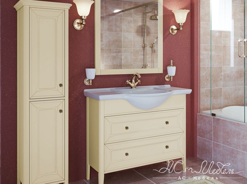 Модель из коллекции, выполненной в популярном сегодня стиле неоклассика. Ее основные характеристики – изящные классические формы и элегантные линии в сочетании с передовыми технологиями и материалами. Классическая форма раковины соответствует всем внешним канонам этого стиля. Зеркало формы квадрата обрамлено в широкой рамкой, подсвечено бра с двух сторон. В комплект входит удобный шкаф-пенал с двумя отделами.