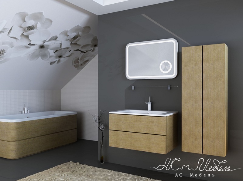 Лаконичная прямоугольная модель, с изящной ручкой и удобной прямоугольной раковиной из литого сан фаянса. Зеркало оснащено подсветкой. В тумбе за выдвижными фасадами – ящики для предметов. Для полотенец и бытовой химии предлагается дополнительный двустворчатый шкаф-колонна, который оснащен навесами с обеих сторон и легко превращается из левого в правый простым переворотом. Помимо стандартного подключения водоснабжения и канализации из стены предусмотрена возможность подключения снизу – в нижней панели тумбы и за полкой для труб специально оставлено место.