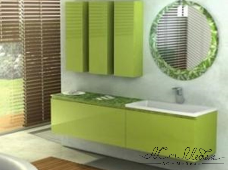 Разбавить мебель для ванной летней зеленью — отличное решение для ванной комнаты. Обилие ящиков решает вопрос хранения в помещении.