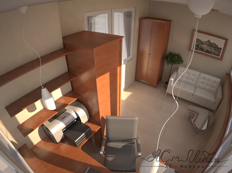Для организации рабочей зоны на маленьком балконе стол лучше устанавливать встроенный под заказ. Полочки можно установить и под подоконником, горизонтальные или наклонные. Оптимальным цветовым решением для небольшого кабинета станет использование светлых мягких тонов.