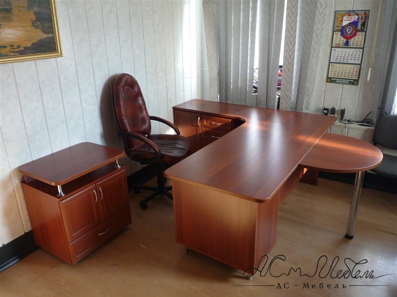 Многофункциональный и современный стол для руководителя. Главной отличительной чертой данной модели является большая рабочая поверхность стола и вместительные тумбы. Кроме того стол имеет несколько регулируемых по высоте полок для документов и разнообразной оргтехники, а также оснащен выдвигающимся ящиком, который закрывается на ключ.