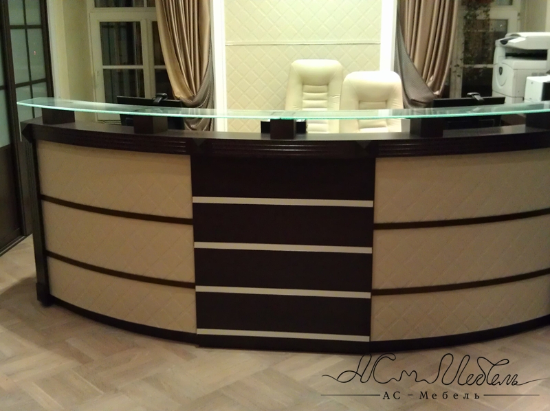 Для входной зоны в гостиницы, крупные офисы, банки и др. организации для встречи и работы с клиентами отличным выбором остаются стойки ресепшн на заказ. Радиусные фасадные стороны и многообразие цветовых решений украсят любой интерьер.