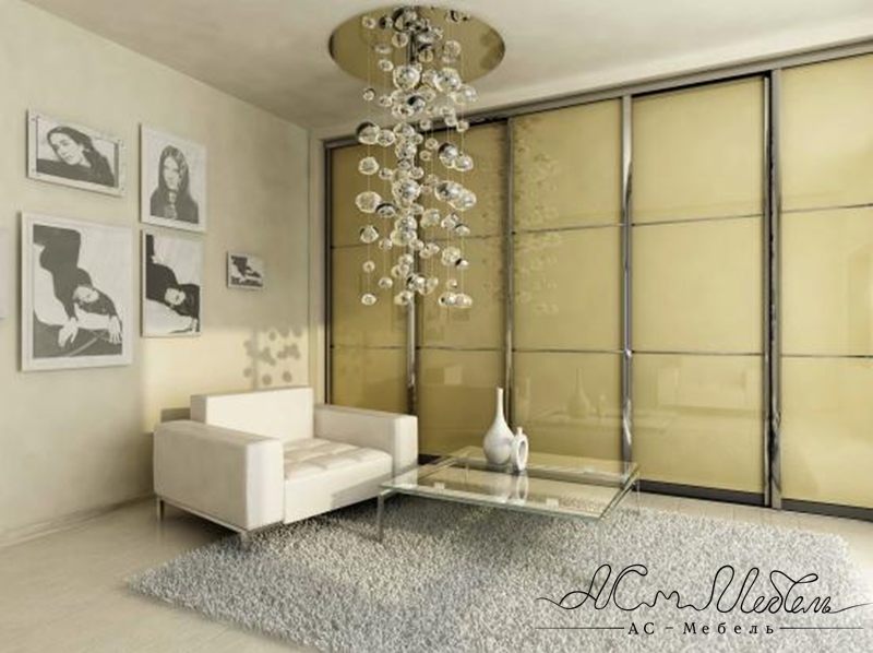 Радиальный шкаф-купе устанавливается таким образом, что соединяет пол и потолок, с максимальной продуктивностью используется пространство. Двери могут быть как прозрачными, из закаленного стекла, так и классическими, из МДФ или шпона.