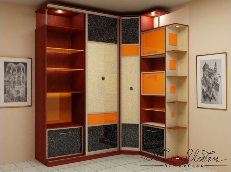 Этот шкаф идеально подойдет для любой комнаты, станет ее украшением. С учетом малой глубины боковых стенок, вы получаете вместительный полноценный шкаф. Выполнен в современном стиле, никаких лишних элементов. Дополнен стильными полочками по стене. Огромный угловой шкаф сочетает в себе гардеробную и горку.