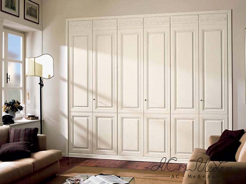 Встроенный распашной шкаф в классическом стиле для гостиной.